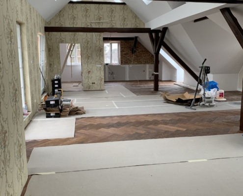 Hier wurden aus zwei Hotelzimmern ein privater Wohnraum im zwanziger Jahre Stil geschaffen. Der Trockenbau wurde durch eine andere Firma ausgeführt.
